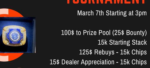 Welcome! You’re invited to our March seventh 2026, 125 buying in tournament